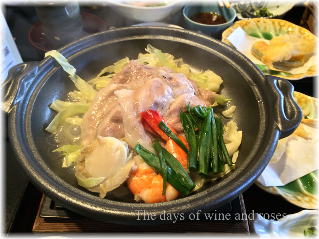 キャベツと豚肉の陶板焼き、さっぱりと食べられます。