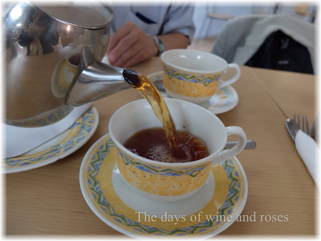 カフェに陣取り、紅茶とイングリッシュブレックファーストお願いしました。